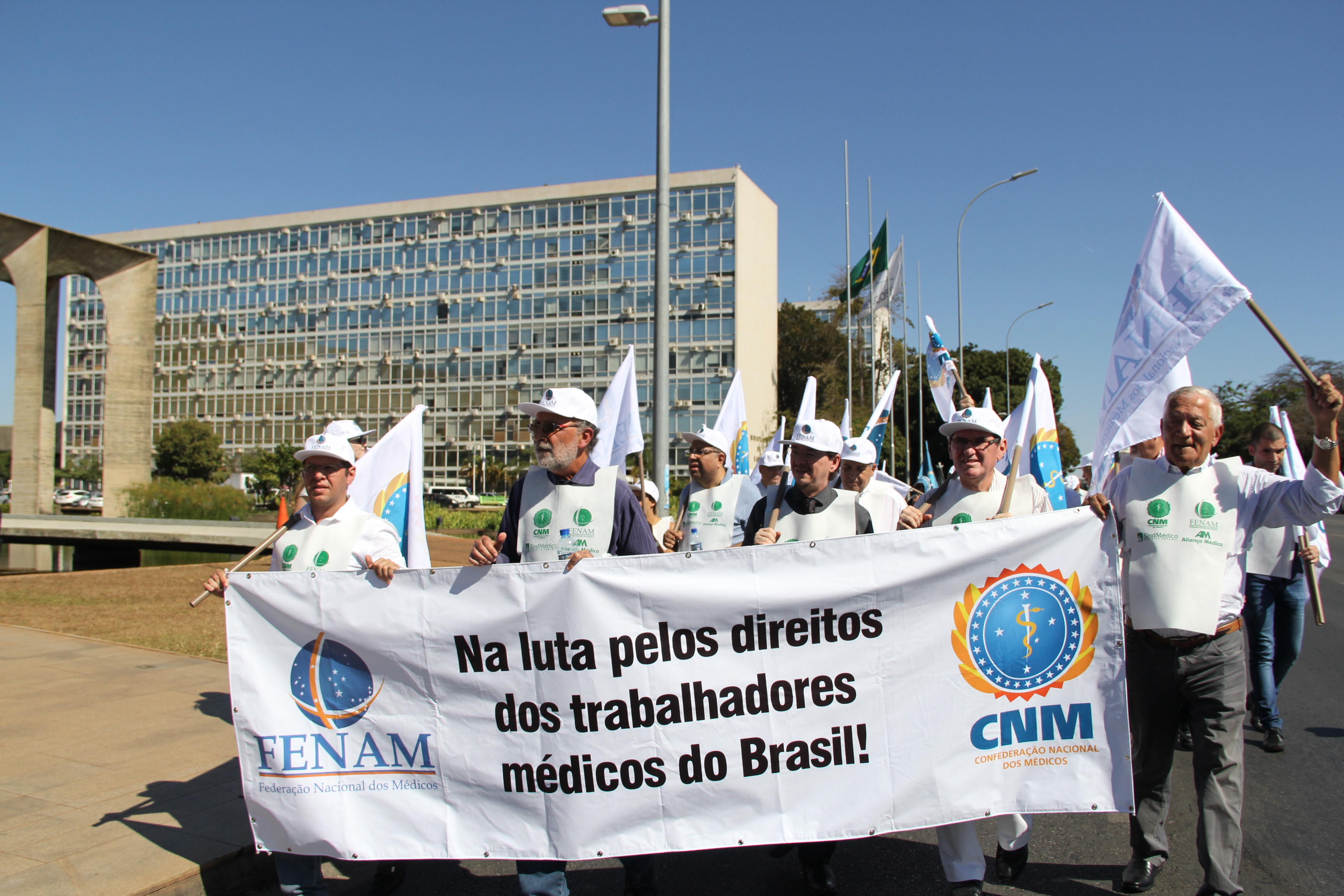 A mobilização começou logo cedo, às 9 horas, com a concentração de representantes da classe médica de todo o País, em frente ao Ministério da Saúde. Às 10 horas os profissionais participaram de uma audiência sobre a saúde pública e reivindicações da classe médica, com o Deputado Izalci Lucas e a presença de parlamentares e entidades médicas.