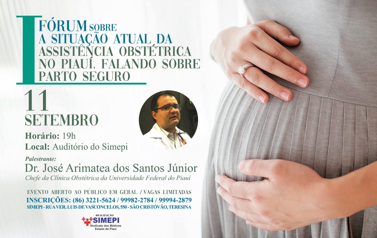 No dia 11 de setembro de 2018, às 19h, ocorrerá o "I Fórum sobre a situação atual da Assistência Obstétrica no Piauí. Falando sobre parto seguro". Para falar sobre esse tema, a entidade convidou o Dr. José Arimatea dos Santos Júnior, Chefe da Clínica Obstétrica da Universidade Federal do Piauí.